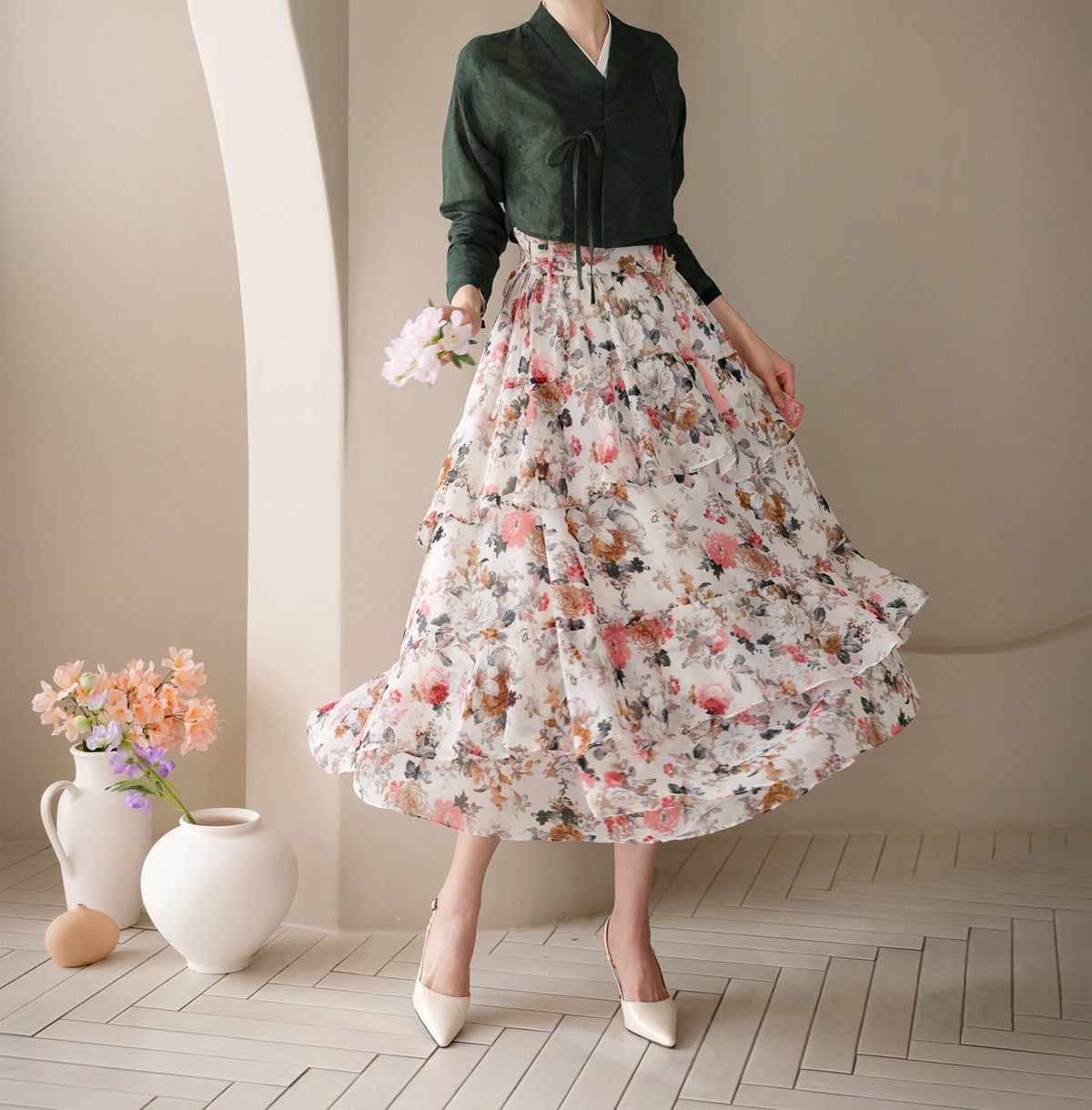 It's jeogori style makes it easy to wear while effortlessly
